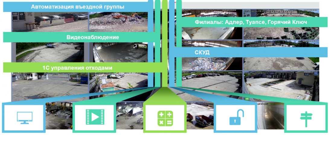 Задачи: Автоматизация въездной группы с использованием реверсной системы взвешивания (весовая пара). Внедрение ПАК. Организация видеонаблюдения. Адлер, завод. автобаза-более 30 камер.Модули учета:Абон отдел, Работа ТС, склады, табельный учет с интеграцией 1С бухгалтерия. В том числе филиалы Адлер, Туапсе, Горячий Ключ
